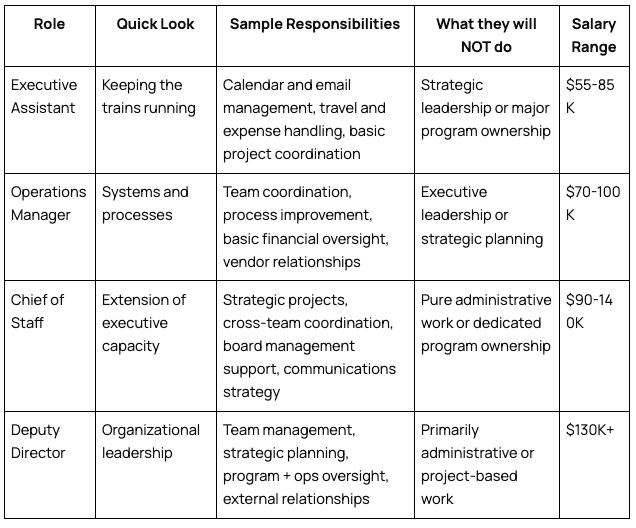 "I keep saying I need a Chief of Staff but honestly I think I just need someone to manage my calendar and coordinate projects — maybe that's actually an EA?"